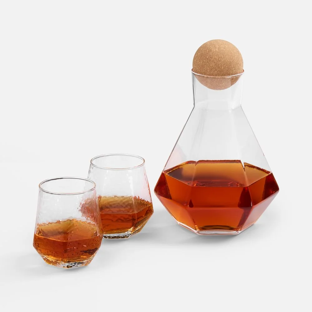 Графин из боросиликатного стекла отличается высокой термостойкостью и долговечностью, гарантируя надежность при ежедневном использовании. Стаканы, выполненные из закаленного стекла, сочетают в себе прочность и изящество, сохраняя прозрачность и устойчивость к ударам. В комплекте также предусмотрена крышка в виде шара из натуральной пробки, которая гармонично дополняет общий дизайн и обеспечивает защиту напитка от пыли и выветривания.